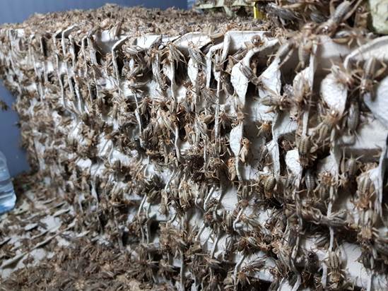 Negli allevamenti classici di grilli commestibili si utilizzano i cartoni di uova all’interno delle casse da allevamento.