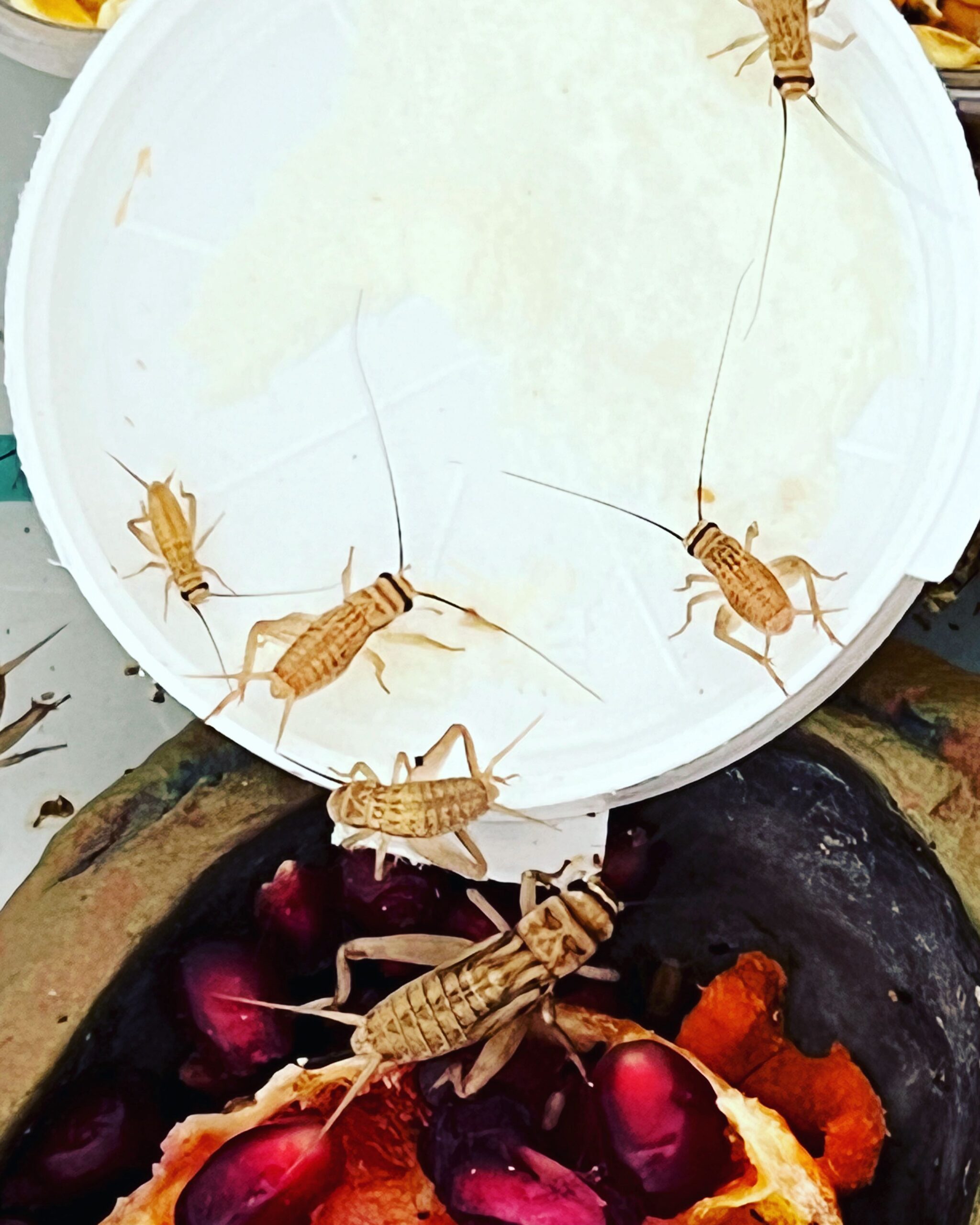 Sempre riguardo alla nostra esperienza, abbiamo visto che sebbene i grilli possano tranquillamente ambientarsi in una stanza a 22-25C°, la temperatura ottimale dovrebbe essere superiore. I parametri potrebbero variare di qualche grado In funzione quindi di come sarà la gestione della stanza in termini di quantità di casse presenti, loro disposizione in verticale, dimensione e areazione delle casse, quantità di cartoni disposti all’interno, etc.