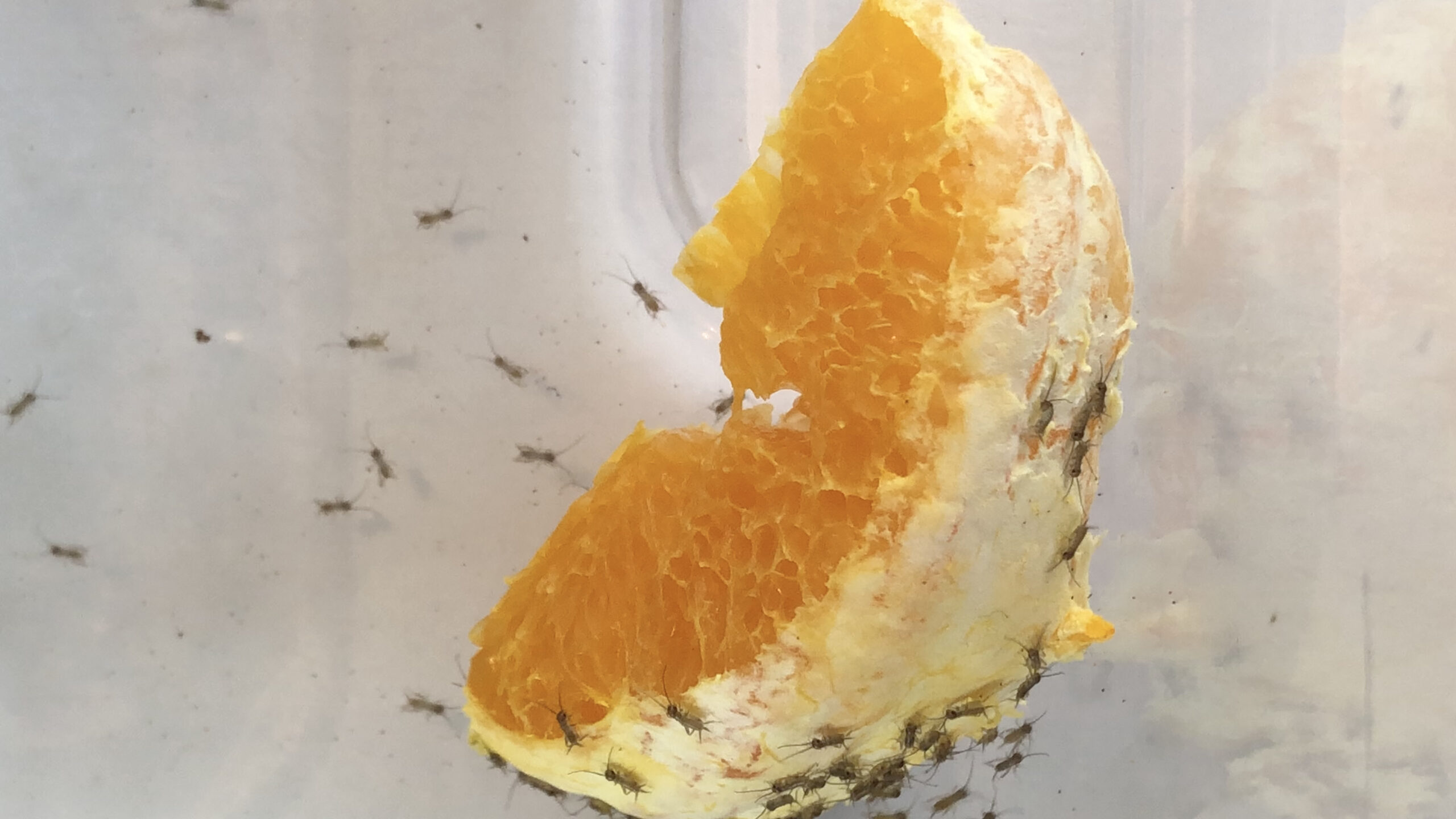 Poiché il numero di pineidi ricavabili da una vasca di incubazione media sono nell’ordine delle migliaia, non è impresa semplice contare quanti grilli sono presenti in una vasca di schiusa. La variabilità inoltre è spesso resa difficile se si lascia la vasca di incubazione per diversi giorni a disposizione dei grilli adulti. Più giorni i grilli adulti avranno a disposizione per deporre le uova, più variabilità di schiusa avremo, con conseguenza di una nuova colonia non coetanea. Per questo motivo, nel nostro allevamento, noi lasciamo deporre per 72 due ore al massimo nella vasca di raccolta delle uova. Così le uova si schiuderanno più o meno tutte in 3-5 giorni.